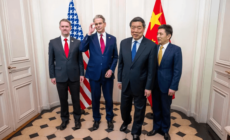 أفادت وكالة أنباء الصين الجديدة “شينخوا” أن نائب رئيس مجلس الدولة الصيني خه لي فنغ أجرى، اليوم الجمعة، اتصالًا عبر تقنية الفيديو مع وزير الخزانة الأميركي سكوت بيسنت والممثل التجاري الأميركي جاميسون جرير، في إطار مساعٍ مشتركة لوضع أسس جديدة للتعاون التجاري بين البلدين، وفق ما نقلته وكالة رويترز.