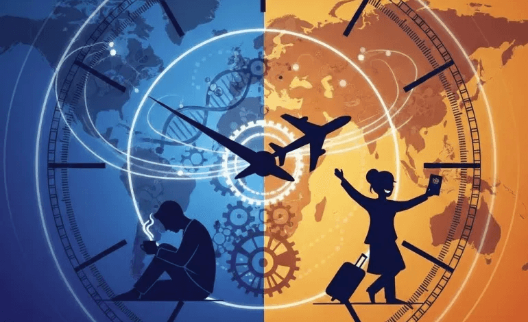توصل فريق من الباحثين اليابانيين إلى مركب دوائي واعد قد يوفر بديلاً فعالاً لمعالجة اضطراب التوقيت البيولوجي المعروف بـجيت لاغ، أو تعب السفر الناتج عن اختلاف التوقيت بين الوجهات. ومن المتوقع أن يُحدث هذا العلاج نقلة نوعية للمسافرين الدائمين لمسافات طويلة، وكذلك للأشخاص العاملين بنظام المناوبات الليلية أو الورديات المتغيرة، الذين غالباً ما يعانون من اضطراب الرحلات الجوية الطويلة المزمن نتيجة عدم انتظام دورة النوم والاستيقاظ.