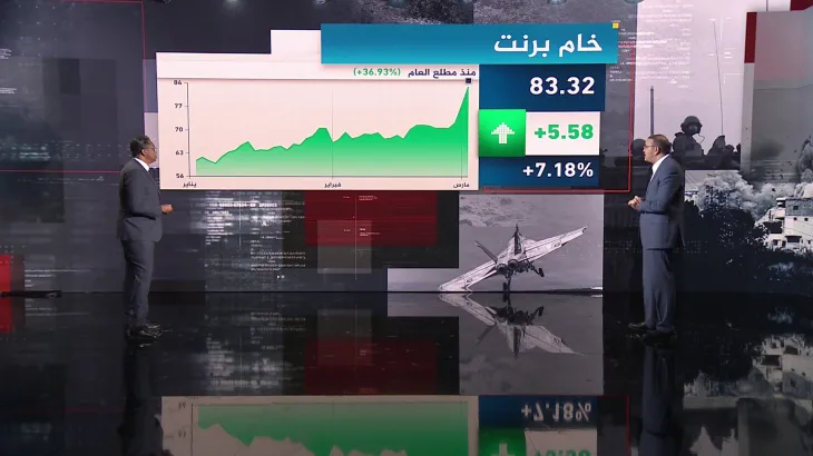 وبحسب البيانات، ارتفع خام برنت إلى نحو 83 دولاراً للبرميل، مسجلاً زيادة تقارب 7 دولارات خلال يوم واحد، بعد أن لامس مستوى 85 دولاراً، وهو الأعلى منذ يوليو 2024. كما سجلت الأسعار منذ بداية العام ارتفاعاً يتراوح بين 35% و37%، بعدما كانت عند حدود 60 دولاراً للبرميل.